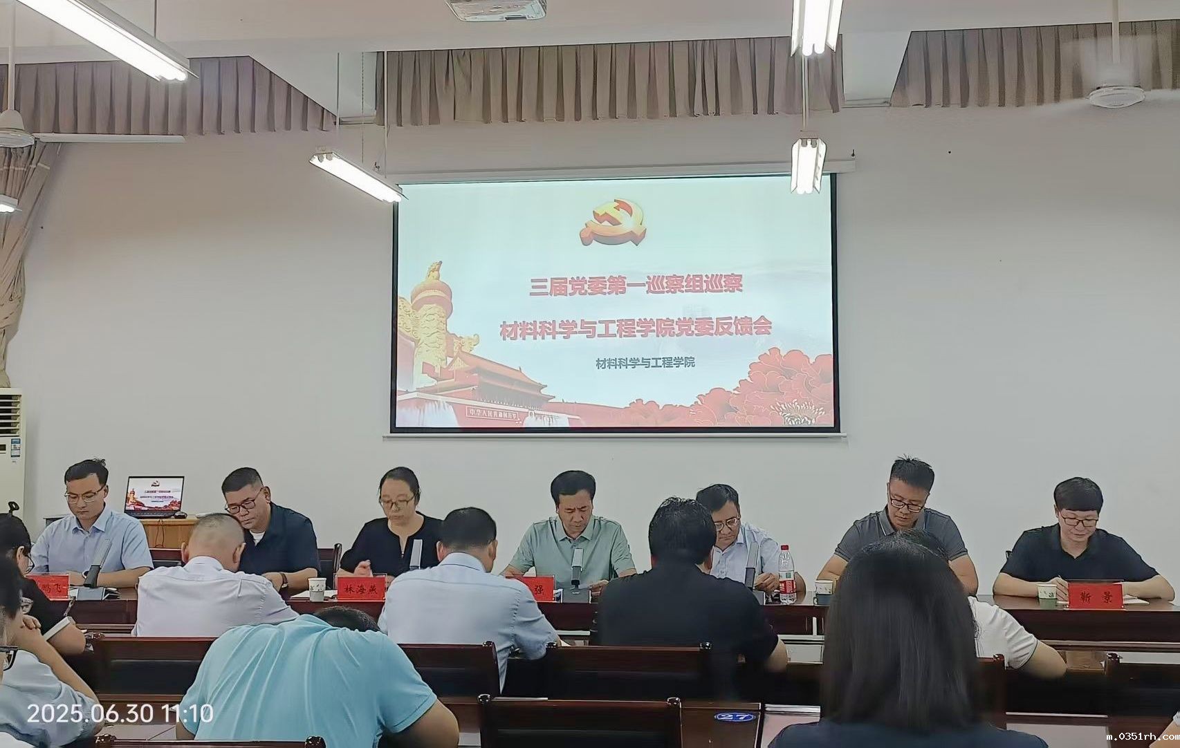 2025年6月30日,三届党委第一巡察组巡察材料科学与工程学院党委反馈会在ES209会议室召开。校党委巡察工...