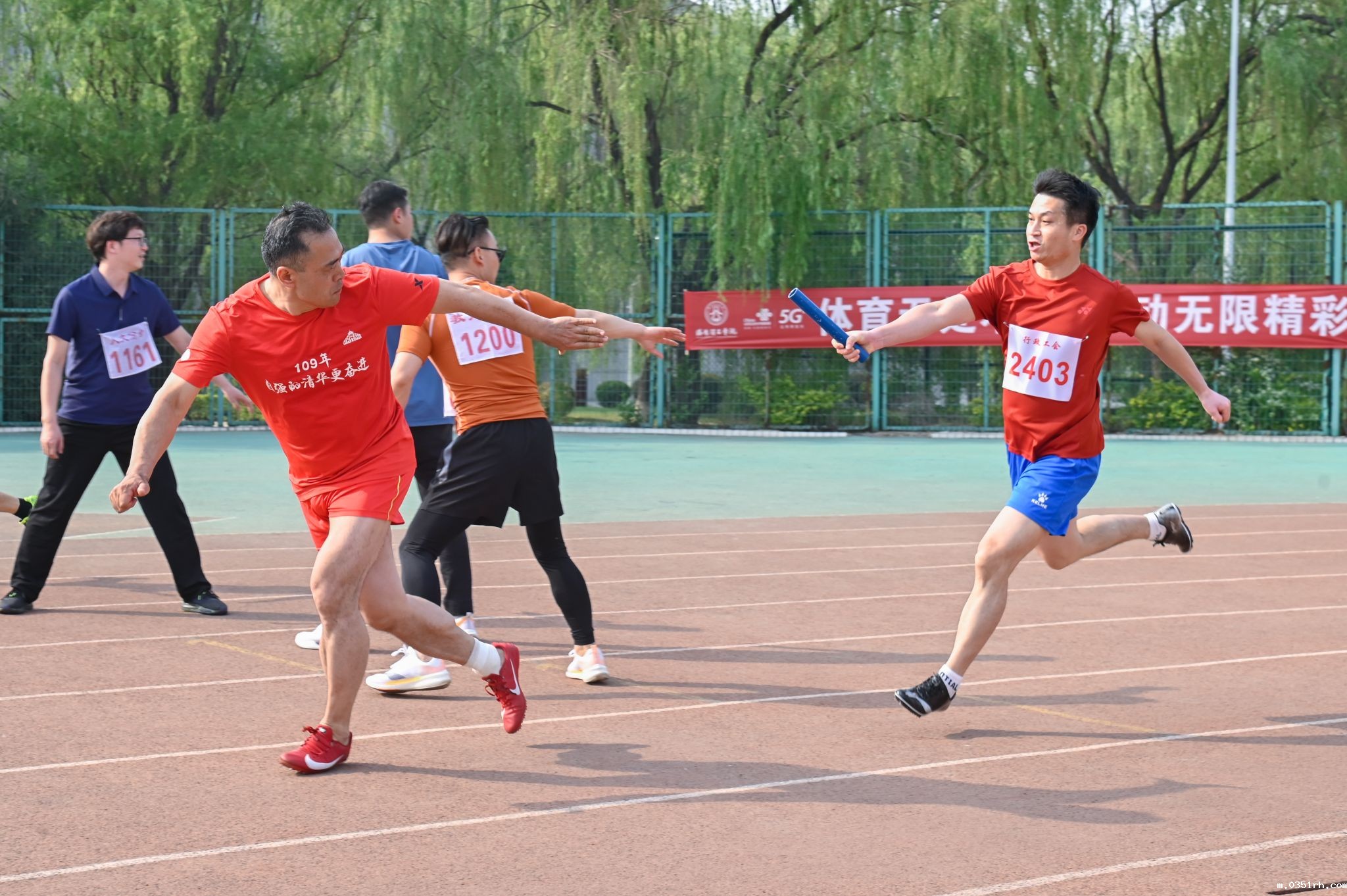 校长张锐在教工男子4*100米接力赛场