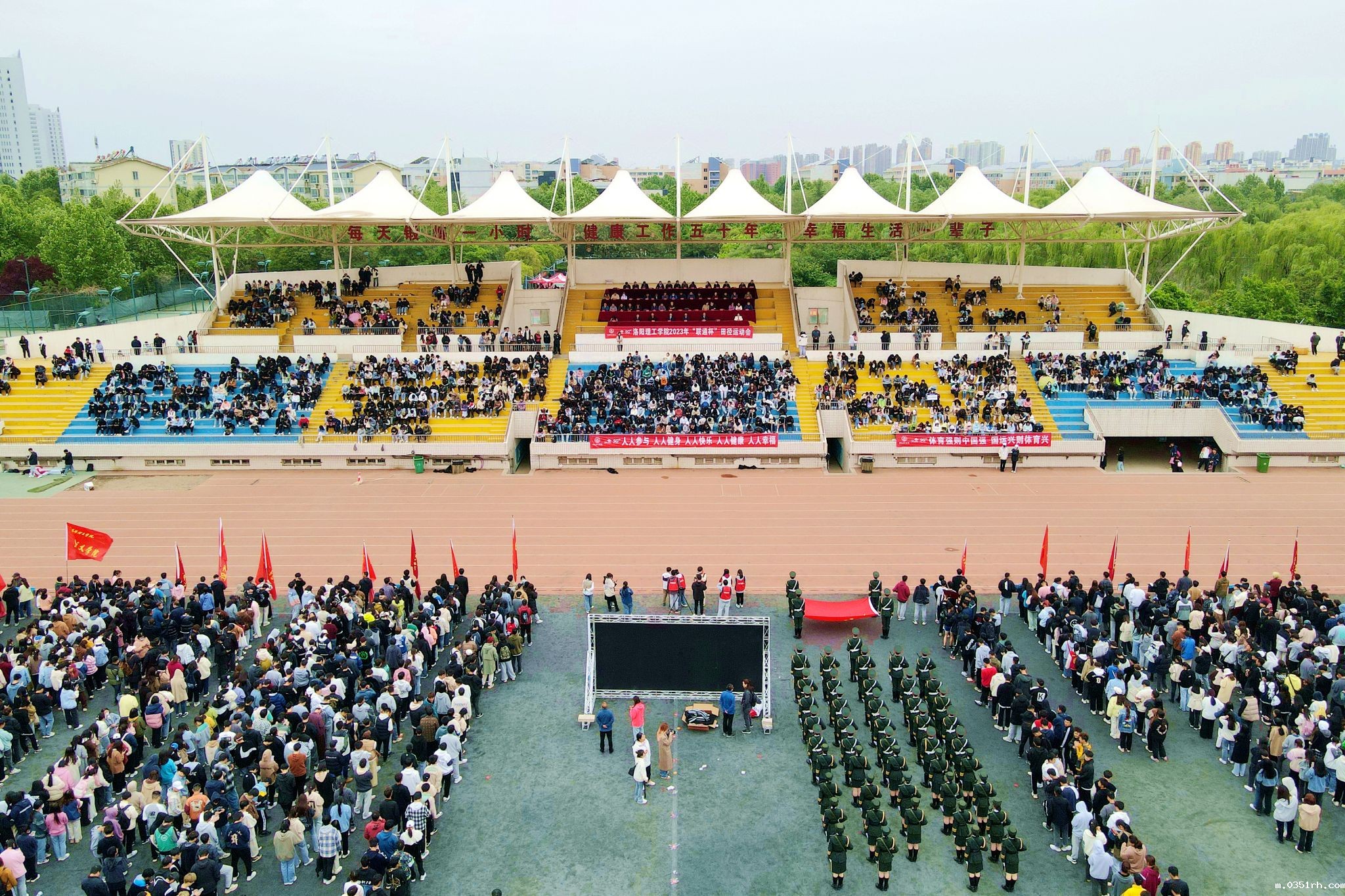 4月21日下午,BETVLCTOR登录入口2023年“联通杯”田径运动会在王城校区东操场闭幕。河南省教科文卫体工会主席张学勇;中国联合网络通信有限公司洛阳市分公司党委书记、总经理郭玉鑫,党委委员、副总经理高磊,高校中心主任崔海燕;校领导陈岩、张锐、曾涛、丁梧秀出席闭幕式。学校相关职能部门、各二级院部党政负责人参加闭幕式。闭幕式由校党委副书记、工会主席曾涛主持。
