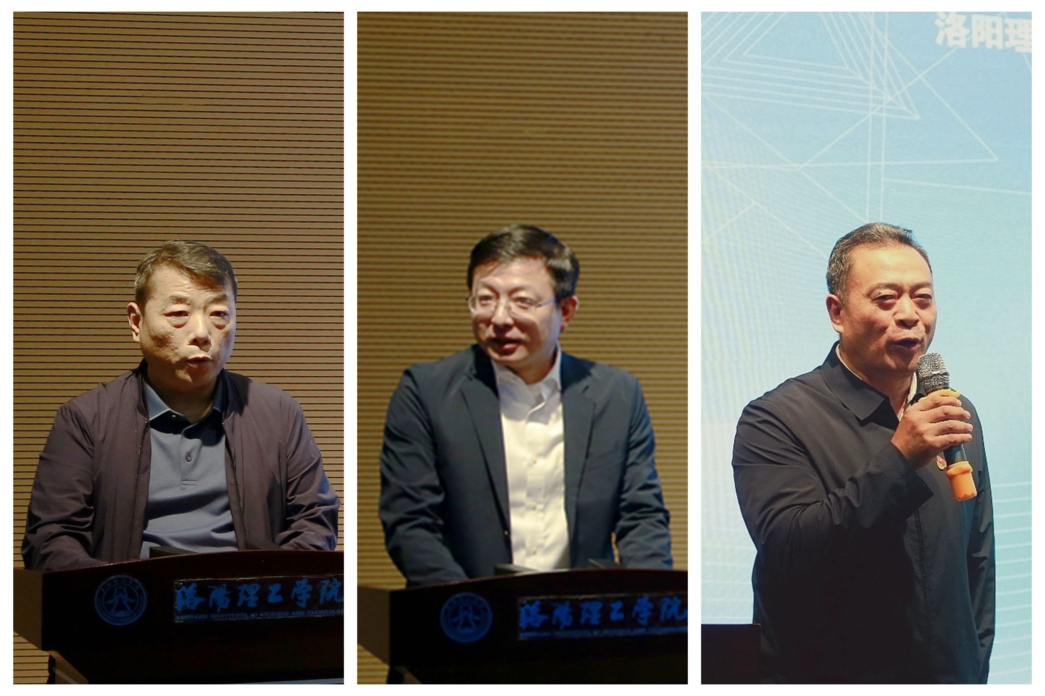 洛阳市委统战部副部长朱晓伟(左)、洛阳正大置业有限公司副总经理褚永平(中)分别致辞,校长张锐(右)宣布本次展览开幕。