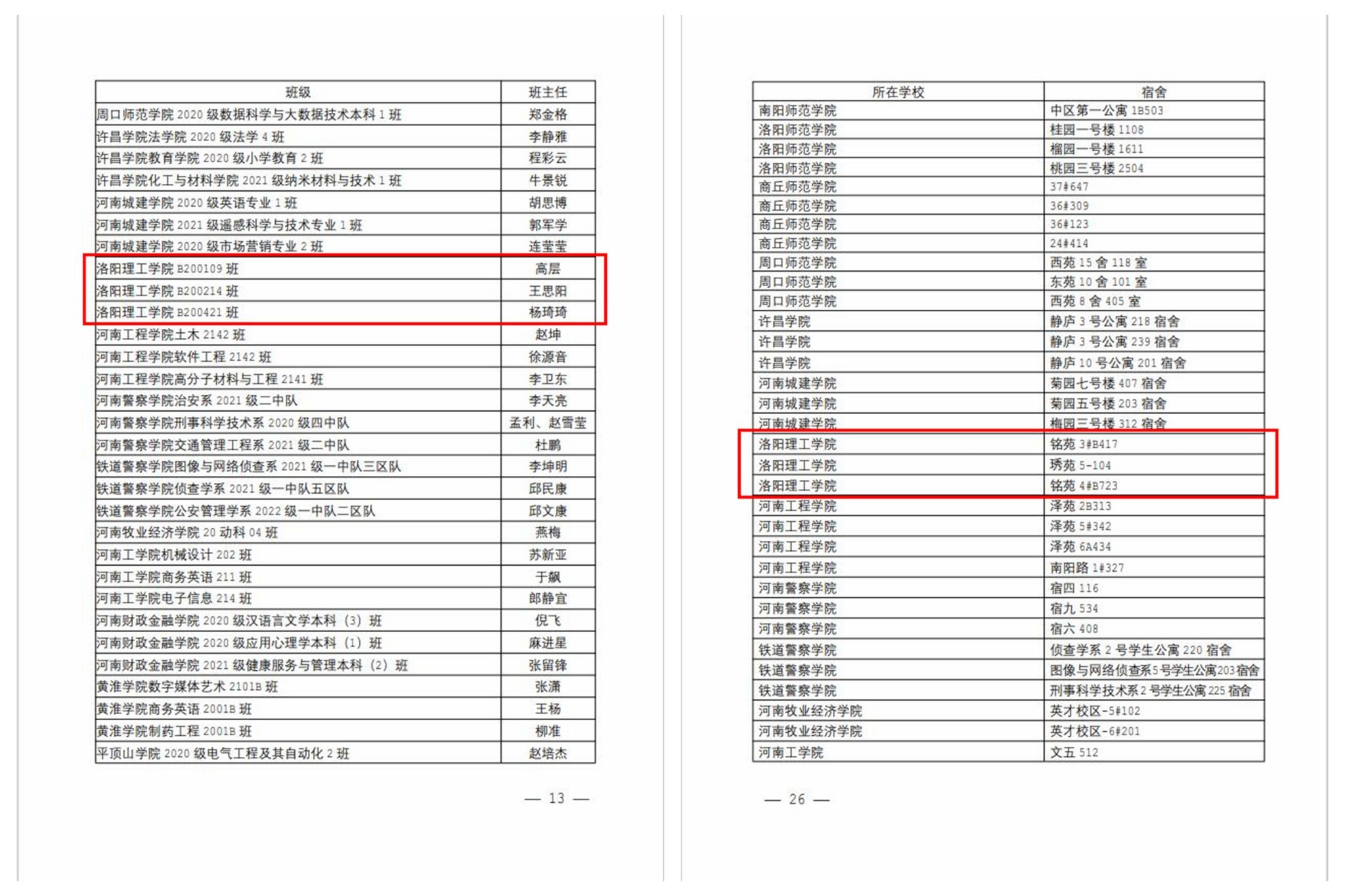 近日,中共河南省委教育工委、河南省教育厅公布2023年度全省教育系统“两创两争”活动先进集体和先进个人评选结果,我校3个班级、3个宿舍、1个社团、5名教师、7名学生分别获得先进集体和先进个人荣誉称号。