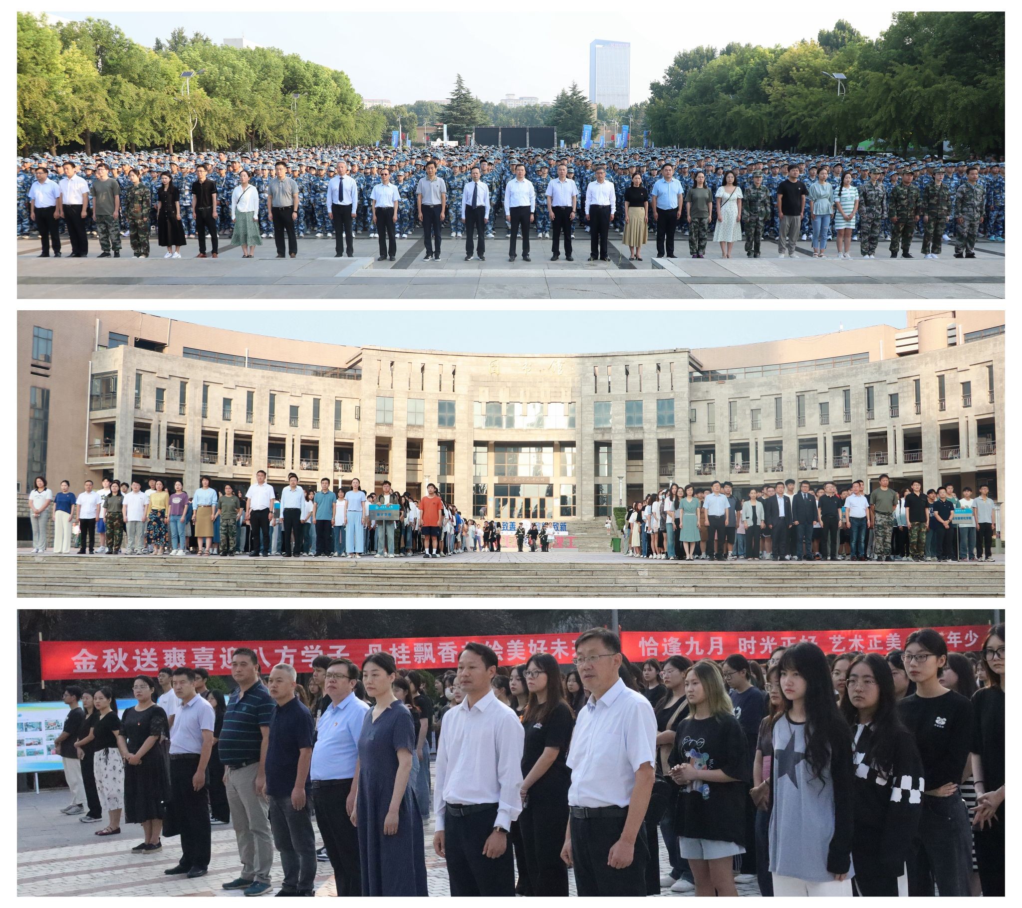 9月4日,新学期升国旗仪式暨“国旗下的演讲”活动,在我校王城、开元、九都三个校区同时举行。校领导陈岩、曾涛、胡恩立、丁梧秀、刘楠、黄志全、马珺、韩洪涛、王新武出席升旗仪式。党政办公室、党委宣传部、学生工作部、教务处、校团委等职能部门负责人,各二级学院党委书记、党委副书记、学工办主任、团委书记、辅导员及学生代表共计2000余人参加了仪式。