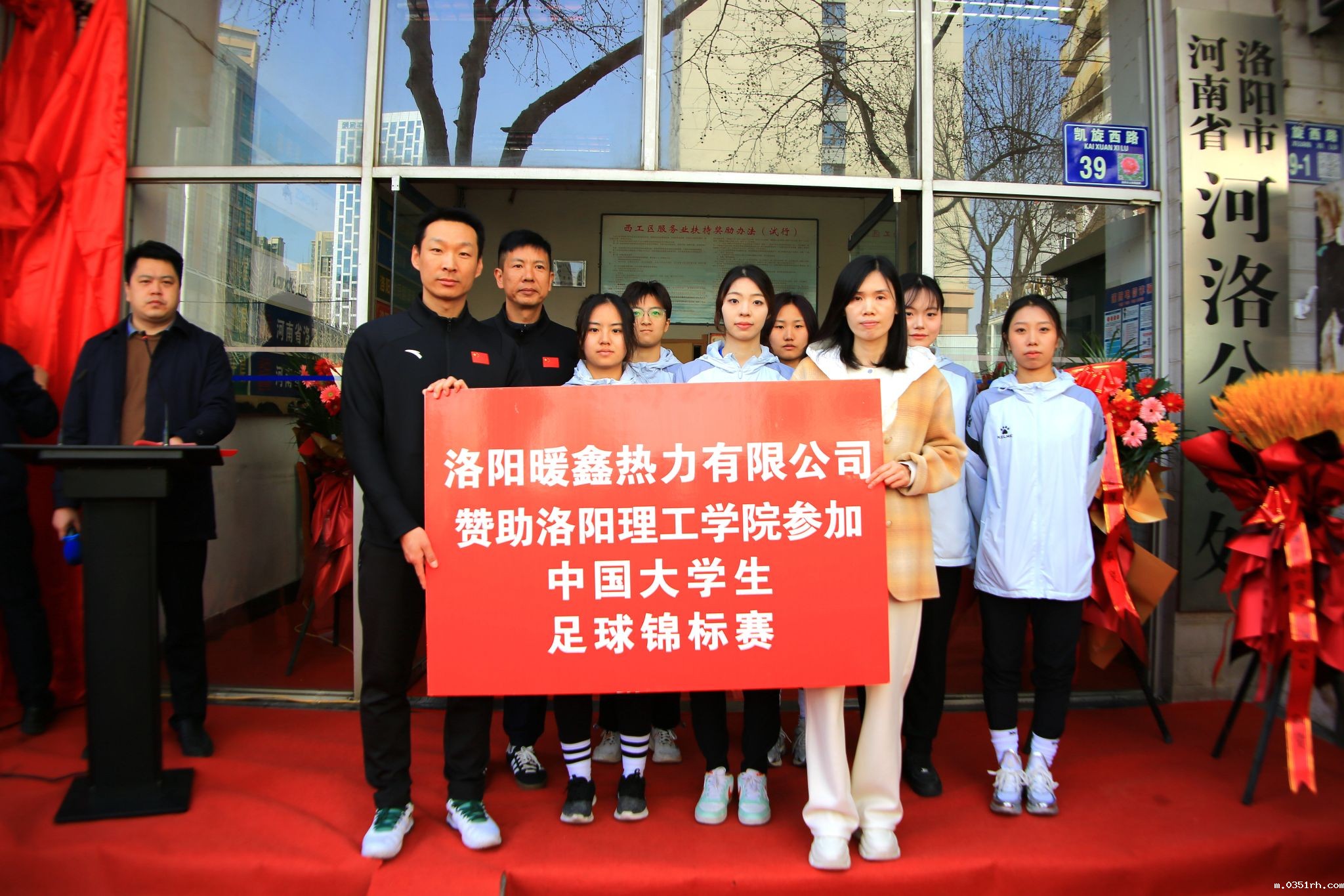 洛阳暖鑫热力有限公司全额赞助我校大学生女子足球代表队,图为赞助仪式现场。