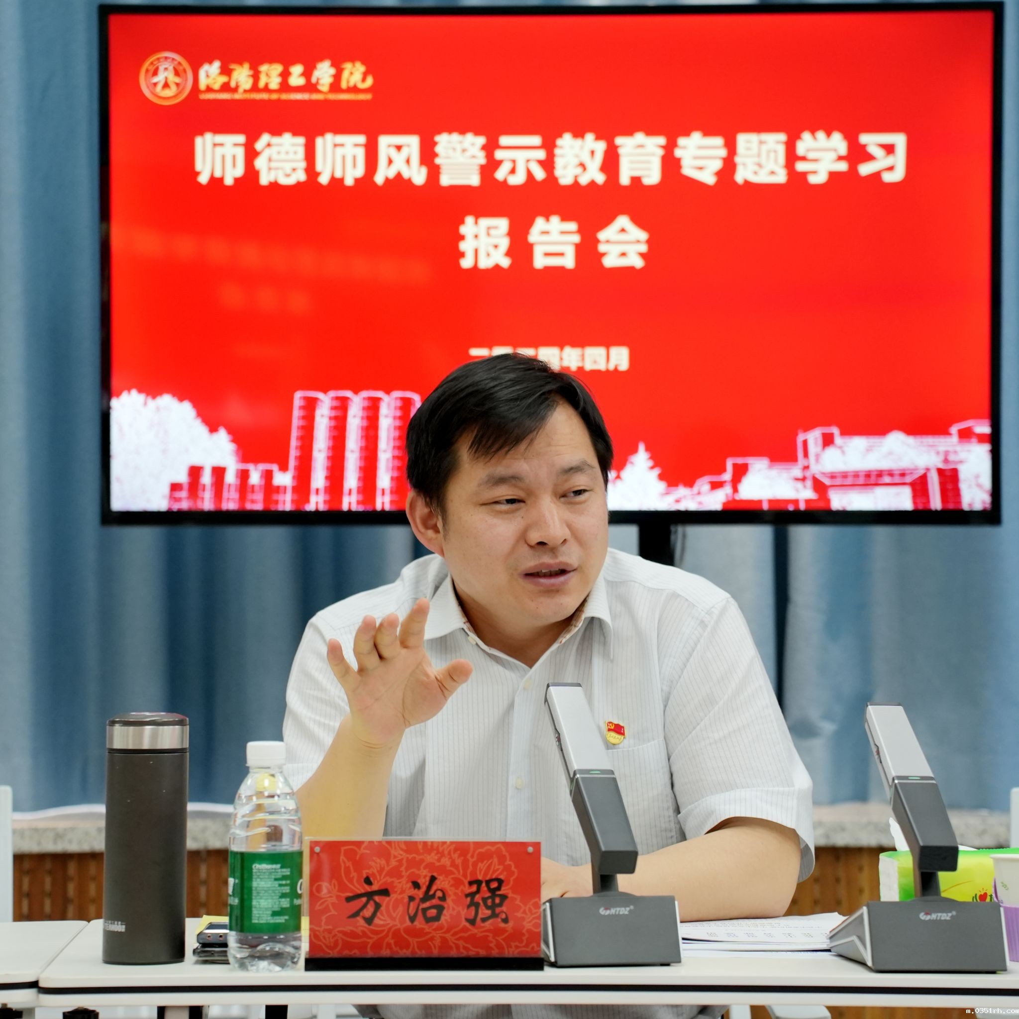 为进一步压实高校师德师风建设主体责任,将师德师风建设任务落到实处,4月28日上午,我校在王城校区教师发展中心召开师德师风警示教育专题学习报告会。河南省教育厅思想政治工作处二级调研员方治强作报告。学校相关职能部门负责人、各二级党组织书记参加报告会。会议由校党委教师工作部负责人主持。