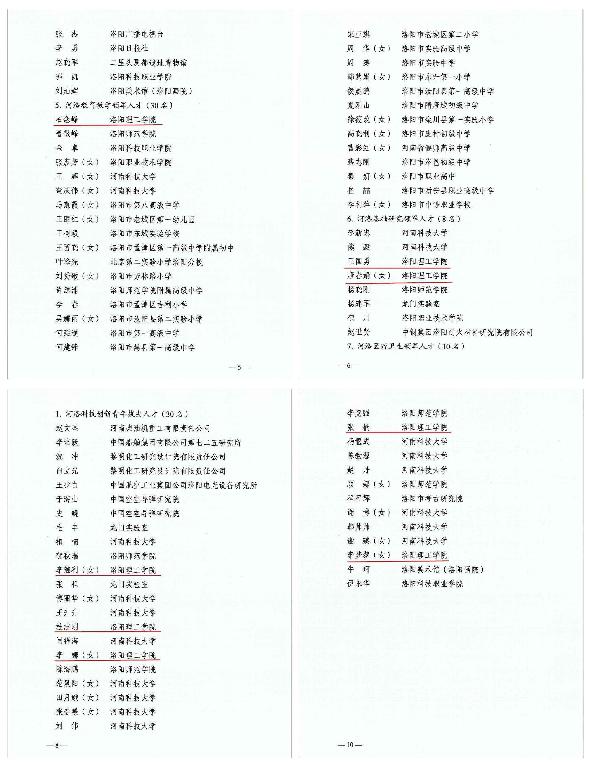 近日,中共洛阳市委人才工作领导小组办公室公布了2023年度河洛领军人才、河洛青年拔尖人才入选人员名单,我校多名教师入围。