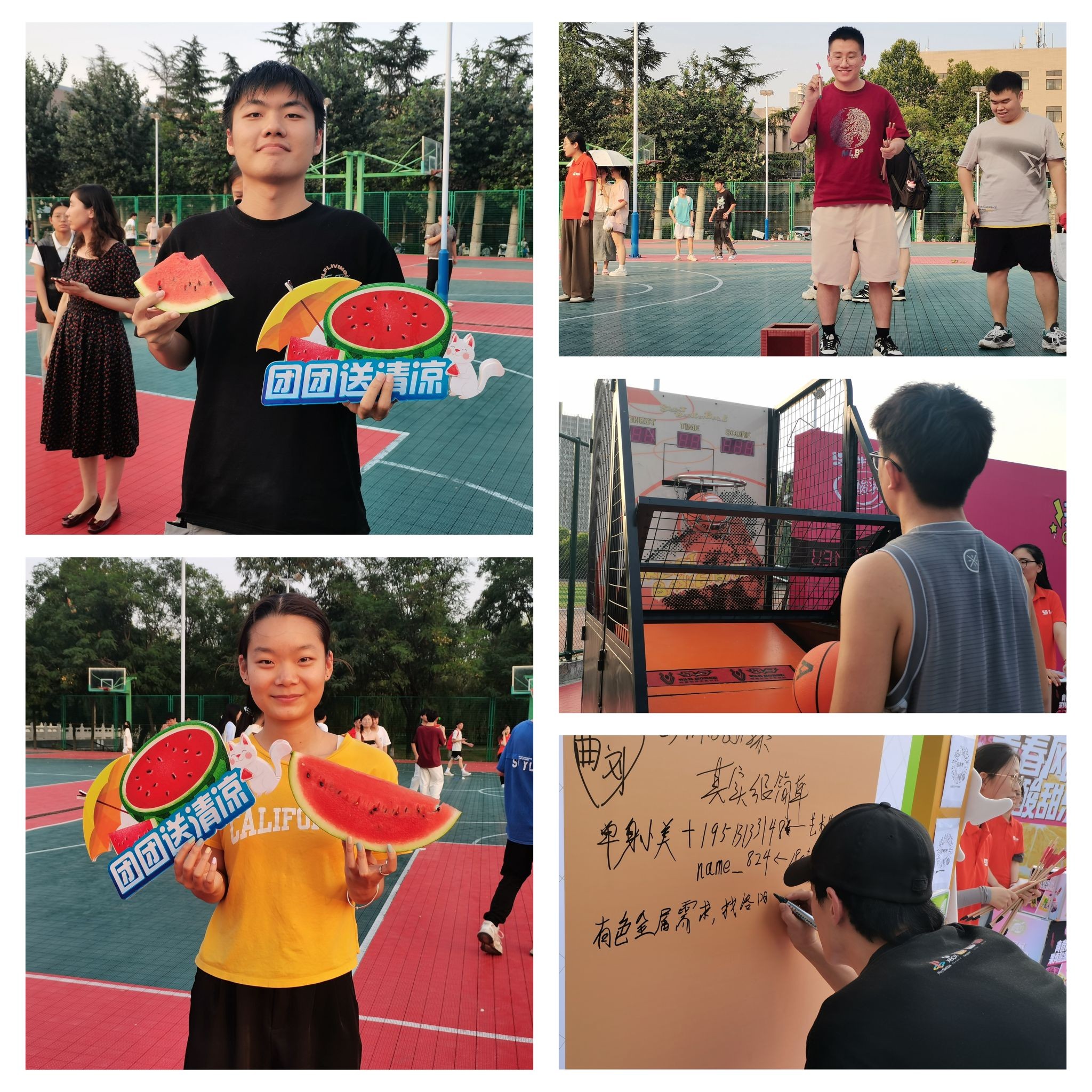 活动期间,校学生会的同学们分别来到了三个校区的保安室、宿舍楼和清洁区,他们手捧西瓜,向这些校园的守护者表达了深深的敬意和感谢。在璞苑篮球场,同学们热情高涨,纷纷参与到跳绳、投篮、投壶等体育互动游戏中去。他们挥洒汗水,在运动中感受到了夏日的清凉与快乐。通过参与活动,同学们锻炼了身体,释放了学业压力,还赢得了西瓜和牛奶等奖品。这些奖品不仅是对他们努力付出的肯定,更是学校关心与爱护大学生的体现。