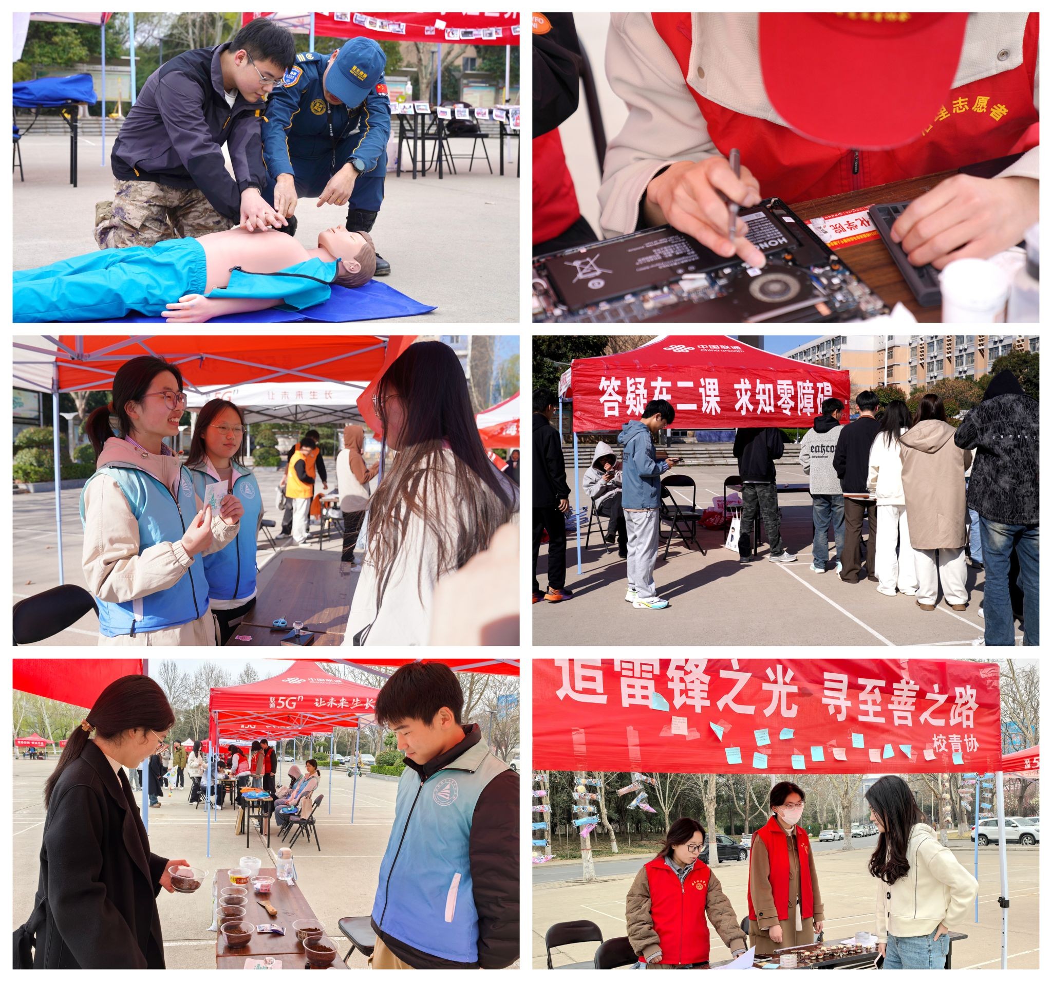 计算机学院/软件学院开展“电脑焕新”技术服务,志愿者为师生提供硬件清洁、系统优化等全流程维护,同步科普电子设备养护知识;电力电气学院“红色螺丝刀”志愿服务团队的“修物暖心”工作台上,废旧家电经过志愿者的妙手重获新生。