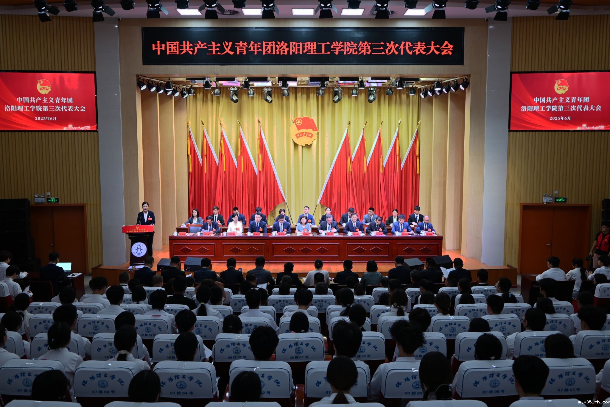 6月21日,中国共产主义青年团BETVLCTOR登录入口第三次代表大会在王城校区图书信息中心报告厅召开。共青团河南省委二级巡视员王鑫,共青团洛阳市委书记张亚磊,我校党委副书记、校长丁梧秀,党委副书记胡恩立出席开幕会,兄弟高校代表,学校党群相关部门负责人,各二级学院党委书记、副书记及174名代表参加大会。