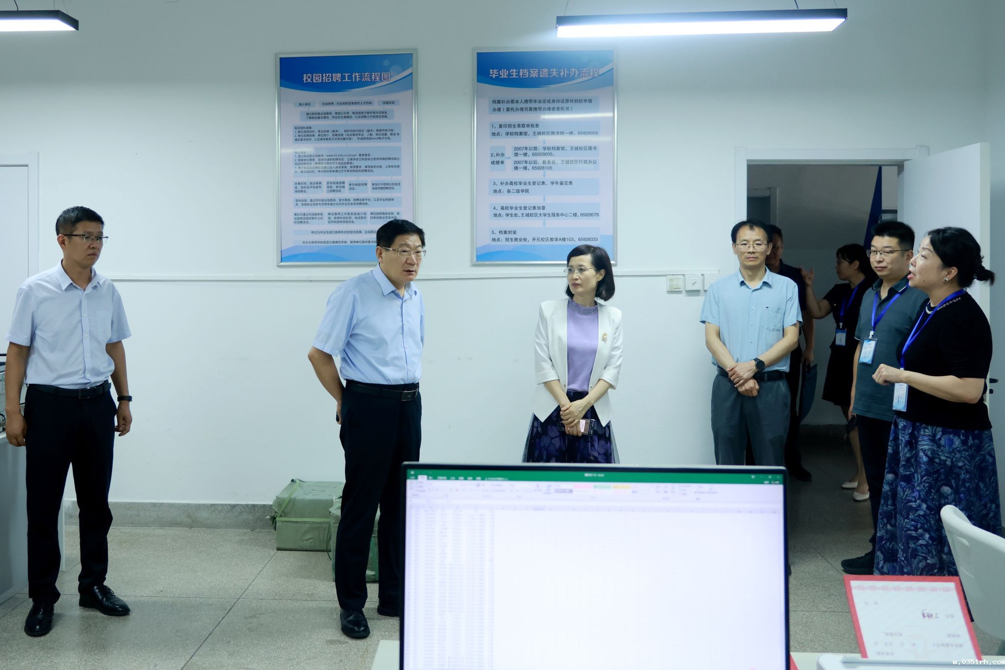 7月18日下午,党委书记卢志文、校长丁梧秀、副校长上官林建一行到伟德手机网页版处慰问暑期坚守岗位的工作人员,并实地调研招生录取工作进展,听取就业实践教学基地建设情况汇报。