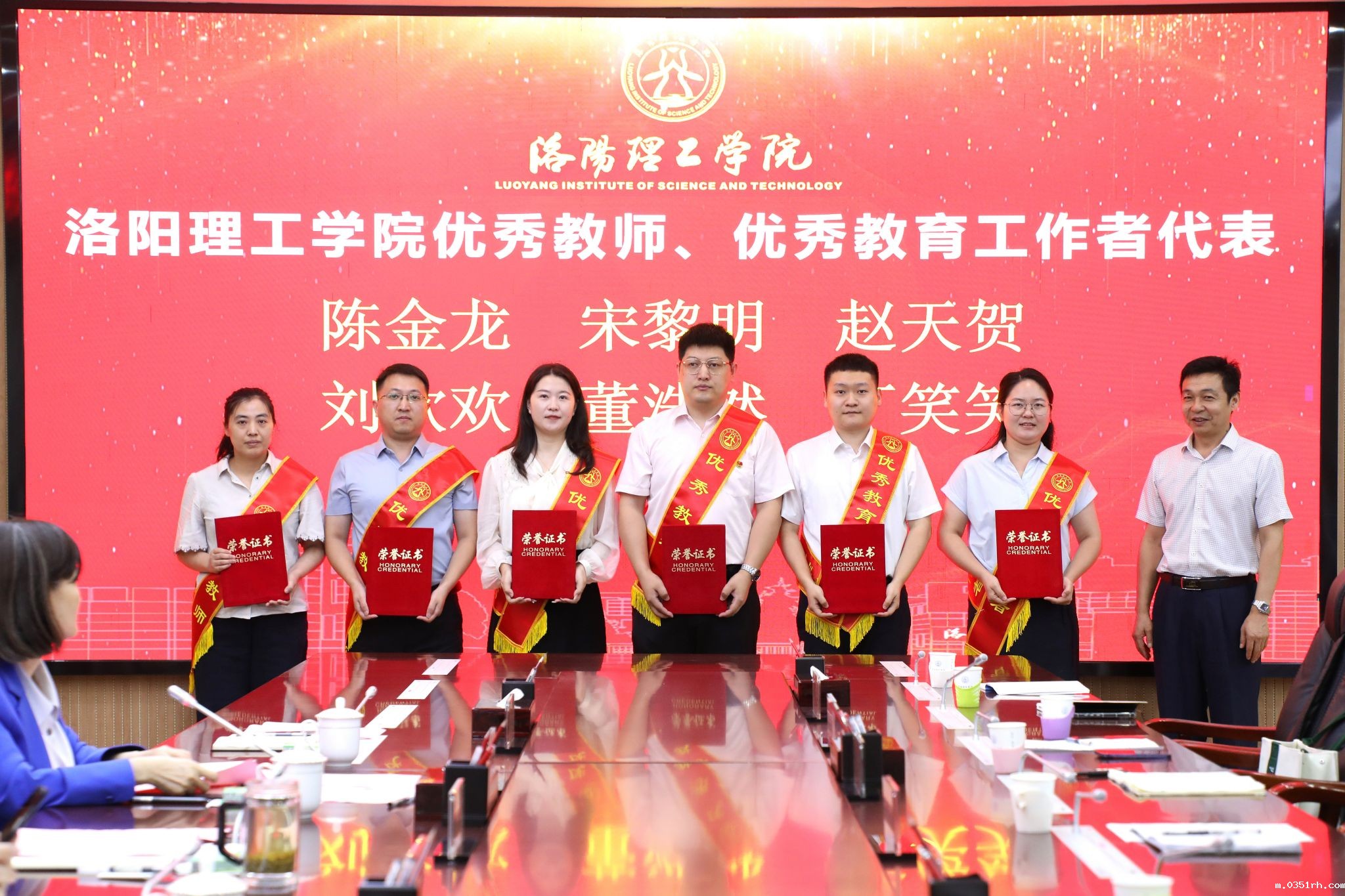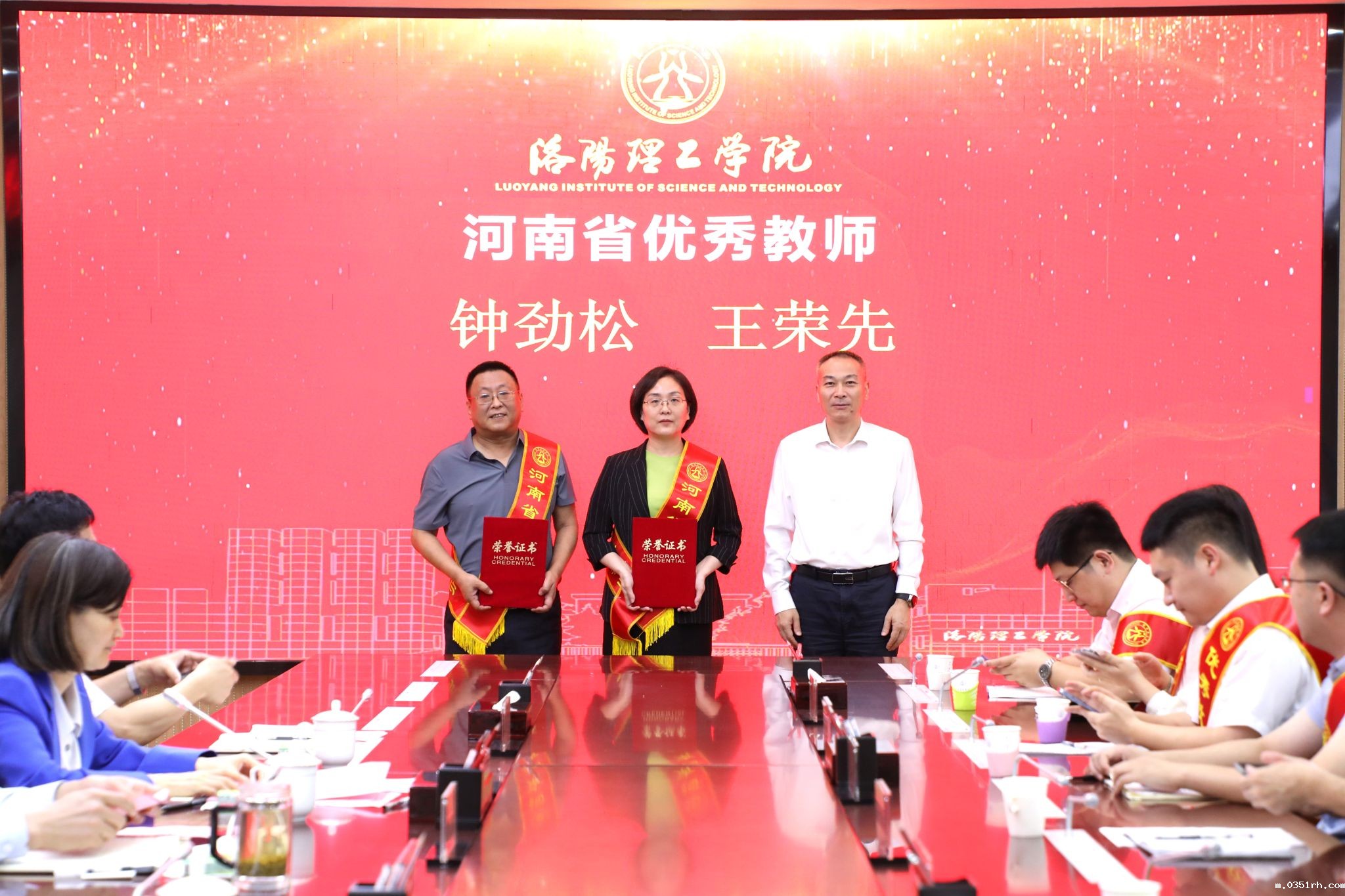 校领导分别为省级先进集体,省级优秀教师,校级优秀教师、优秀教育工作者及从教满三十年教师代表颁发荣誉证书和纪念品。