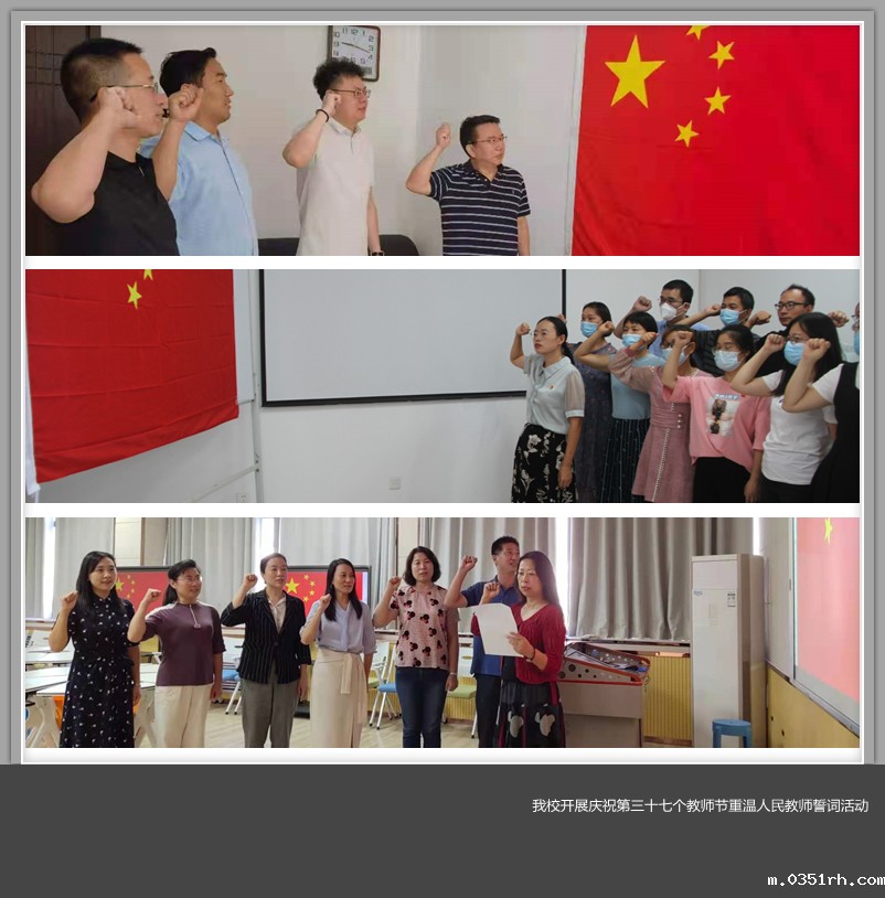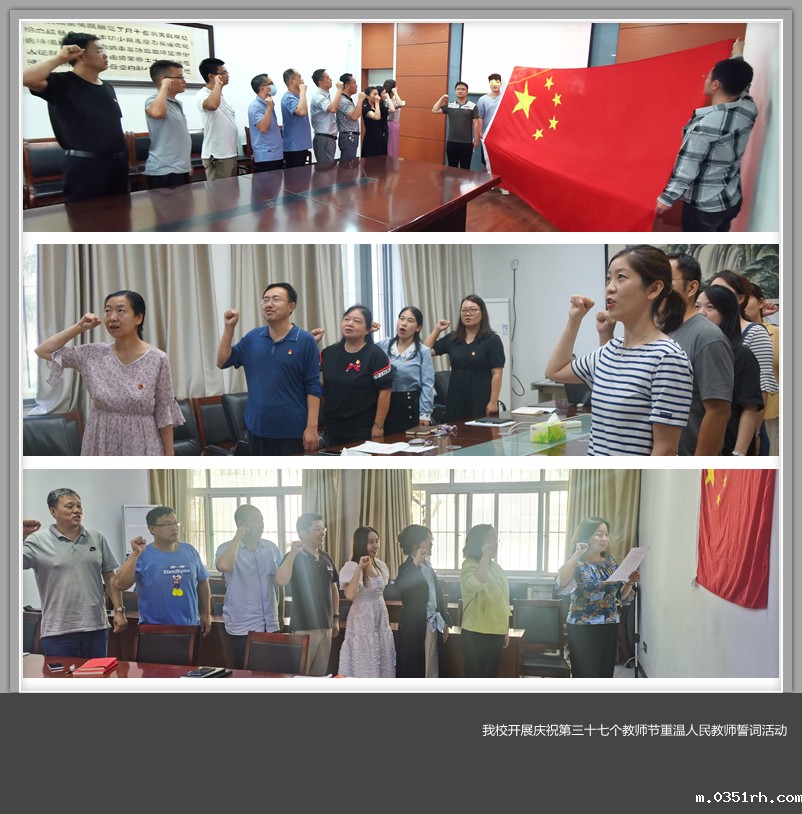 “赓续百年初心,担当育人使命”。重温教师誓词,坚守最美初心,为庆祝第37个教师节,进一步推进师德师风建设,弘扬和践行社会主义核心价值观,营造尊师重教的氛围,增强教师的责任感、使命感、荣誉感,铸造新时代师德、师风、师魂,学校于9月9日至10日,组织校属各单位开展了“教师节重温人民教师誓词活动”。