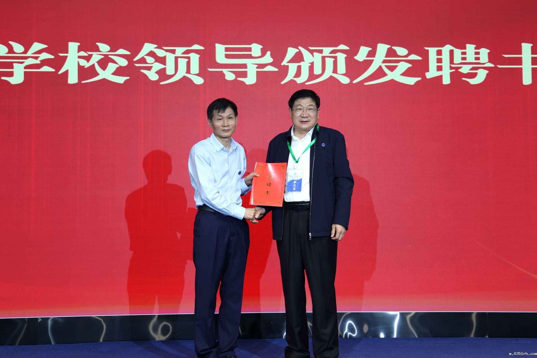 党委书记卢志文为黄山无极雪饮料股份有限公司董事长吴黎康(左)颁发第二届安徽校友会会长聘书