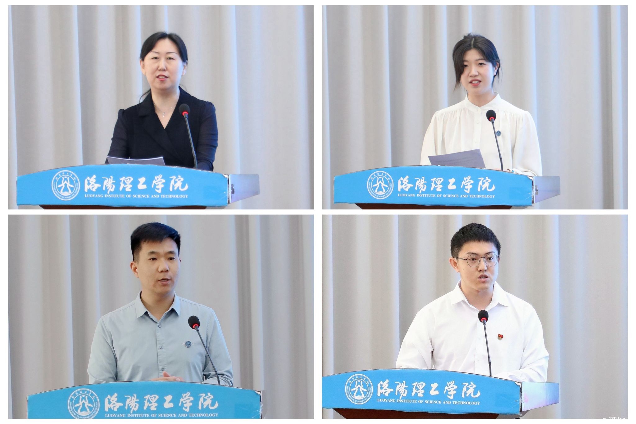 数学与物理教学部金硼博士、环境工程与化学学院辅导员赵国英做为新入职教师代表汇报了培训收获;计算机与信息工程学院刘质纯代表新入职教师作教师行为规范承诺;“师带徒”标兵、人文与社会科学学院张虹老师代表指导教师发言。