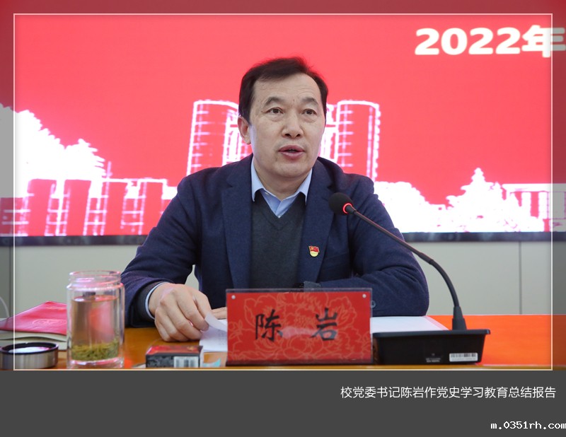 陈岩强调,党史学习教育只有起点,没有终点,我们要以习近平新时代中国特色社会主义思想为指导,牢记为党育人、为国育才的初心使命,以强烈的历史主动精神踔厉奋发、笃行不怠,为高水平应用型大学建设而接续奋斗,以优异成绩迎接党的二十大胜利召开。