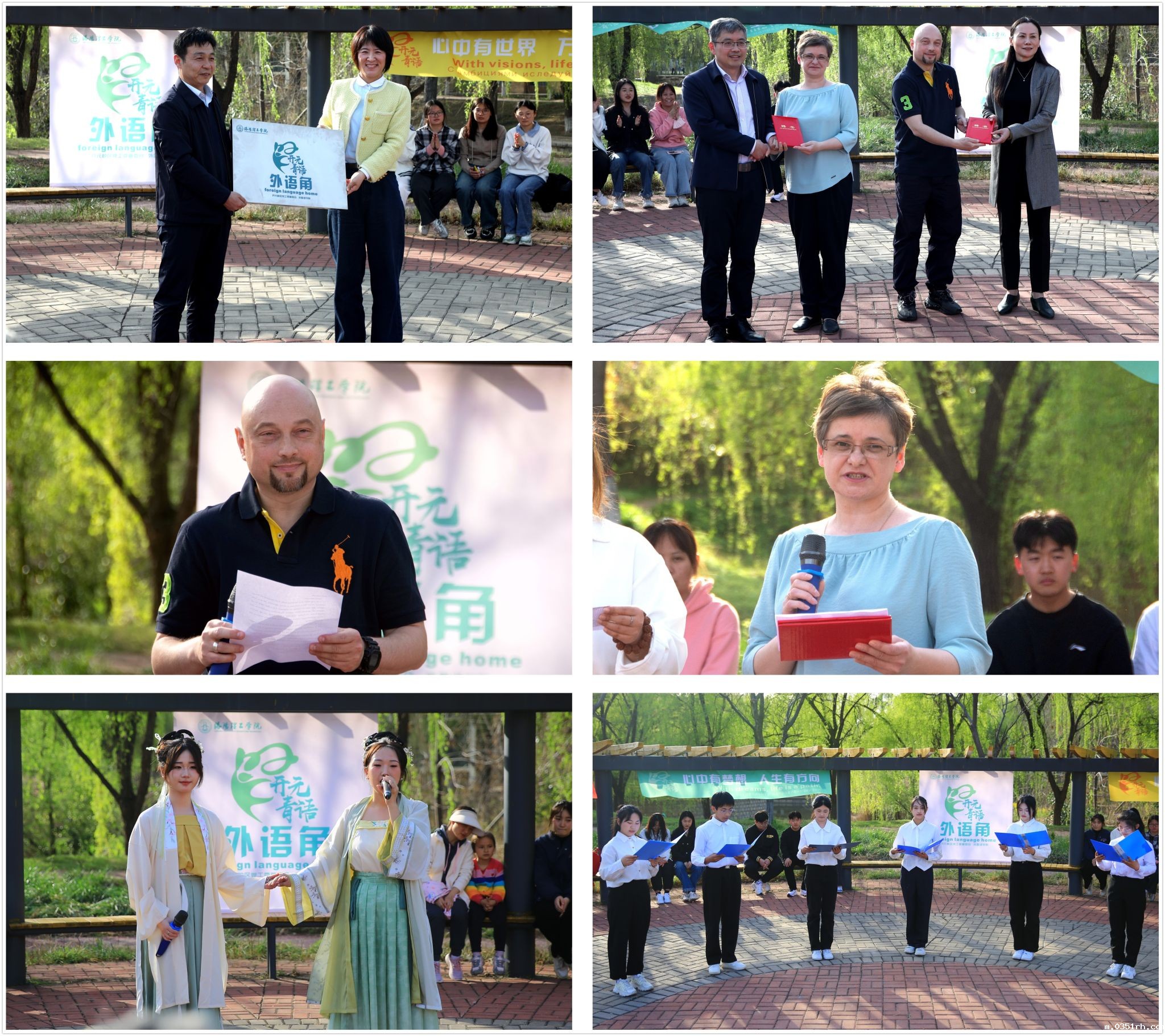 “开元青语”外语角由外国语学院承办,旨在面对全球化浪潮下,为我校师生提供一个语言学习交流沟通的公共平台,培养提升同学们的外语应用能力和跨文化沟通能力,促进我校外语实践教学探索和国际化办学水平。启动仪式现场介绍了外语角的成立背景和运行办法,与会学生代表表演了中英版歌曲《青花瓷》和中英俄版诗朗诵《我和我的祖国》。副校长黄志全为“开元青语”外语角授牌,副校长马珺、王新武为外教Shamil Sharifullin和Liudmila Rumianceva颁发了外语角指导教师聘书。