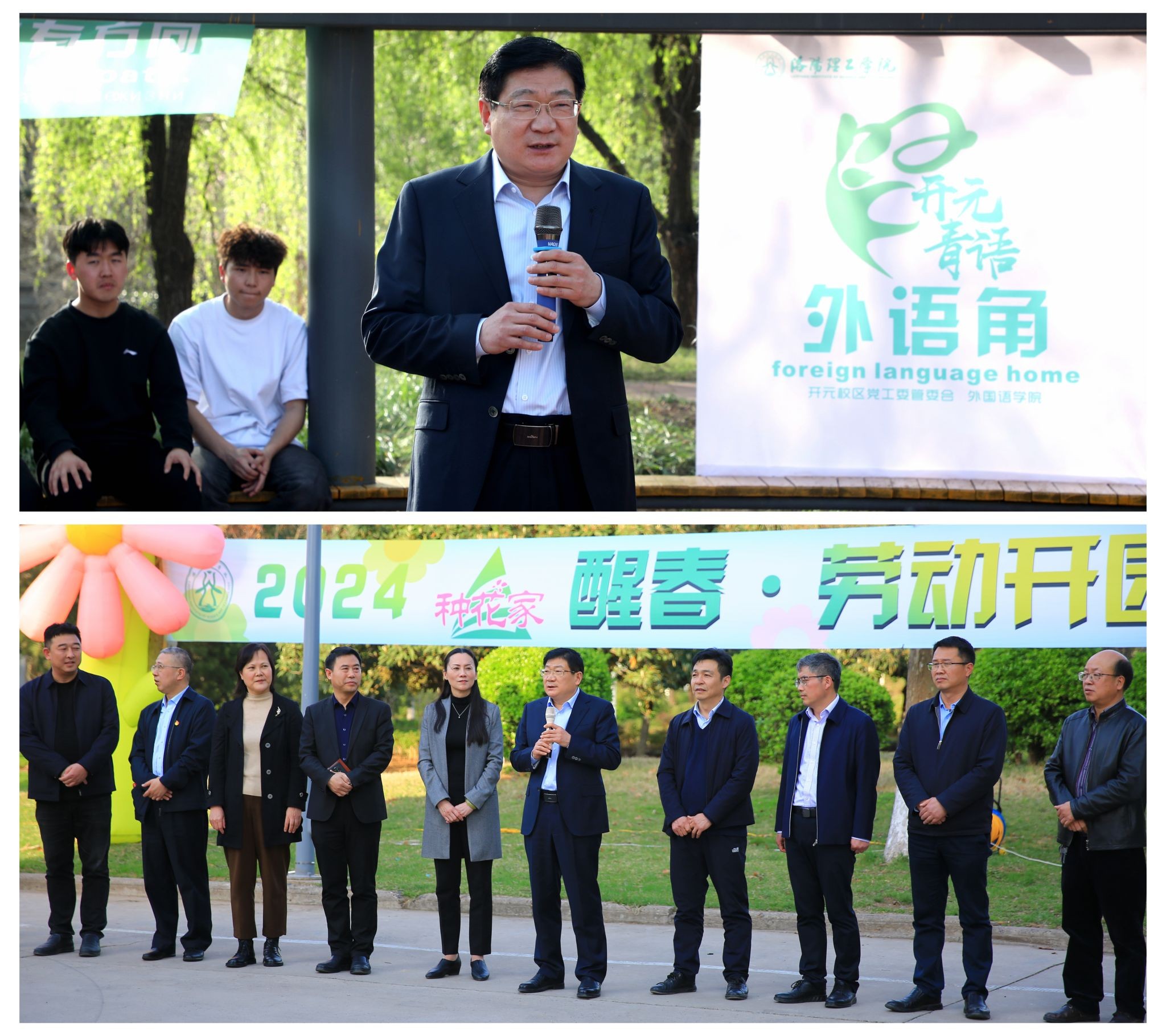 3月28日下午,我校在开元校区分别举行了“开元青语”外语角启动仪式和“种花家”醒春劳动开园节。校领导卢志文、黄志全、马珺、王新武出席活动,开元校区党工委、管委会,党政办公室,党委宣传部,学生工作处,国际交流合作处,后勤管理处,校团委、信息化技术中心等相关部门负责人,相关二级学院负责人及师生代表参加活动。