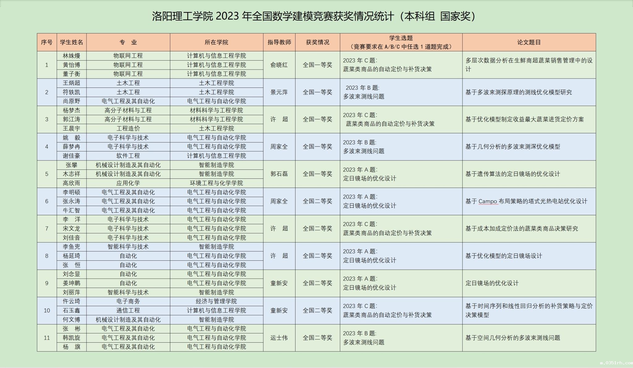 图为我校参加2023年高教社杯全国大学生数学建模竞赛(本科组 国家奖)获奖情况统计表