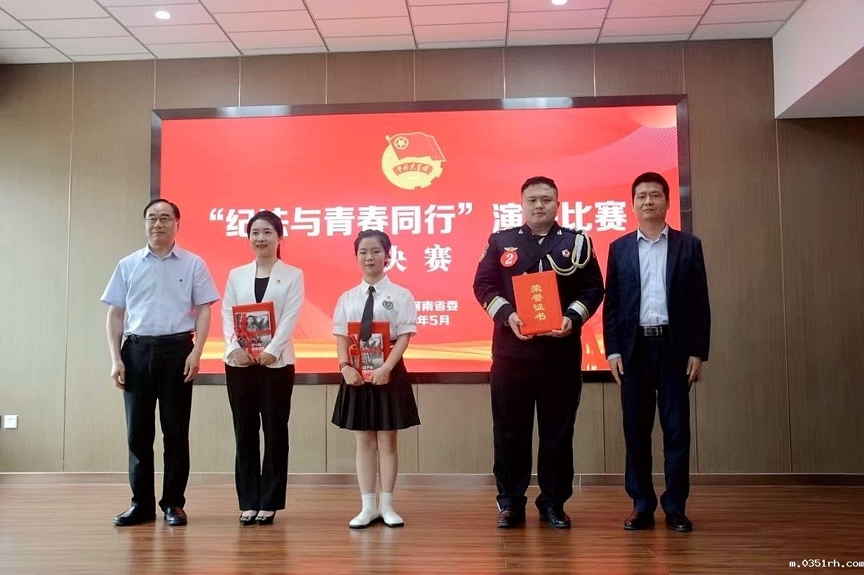 我校艺术设计学院学生郭馨怡(左三)在河南省“纪法与青春同行”演讲比赛决赛中以总分第四名,荣获决赛二等奖。