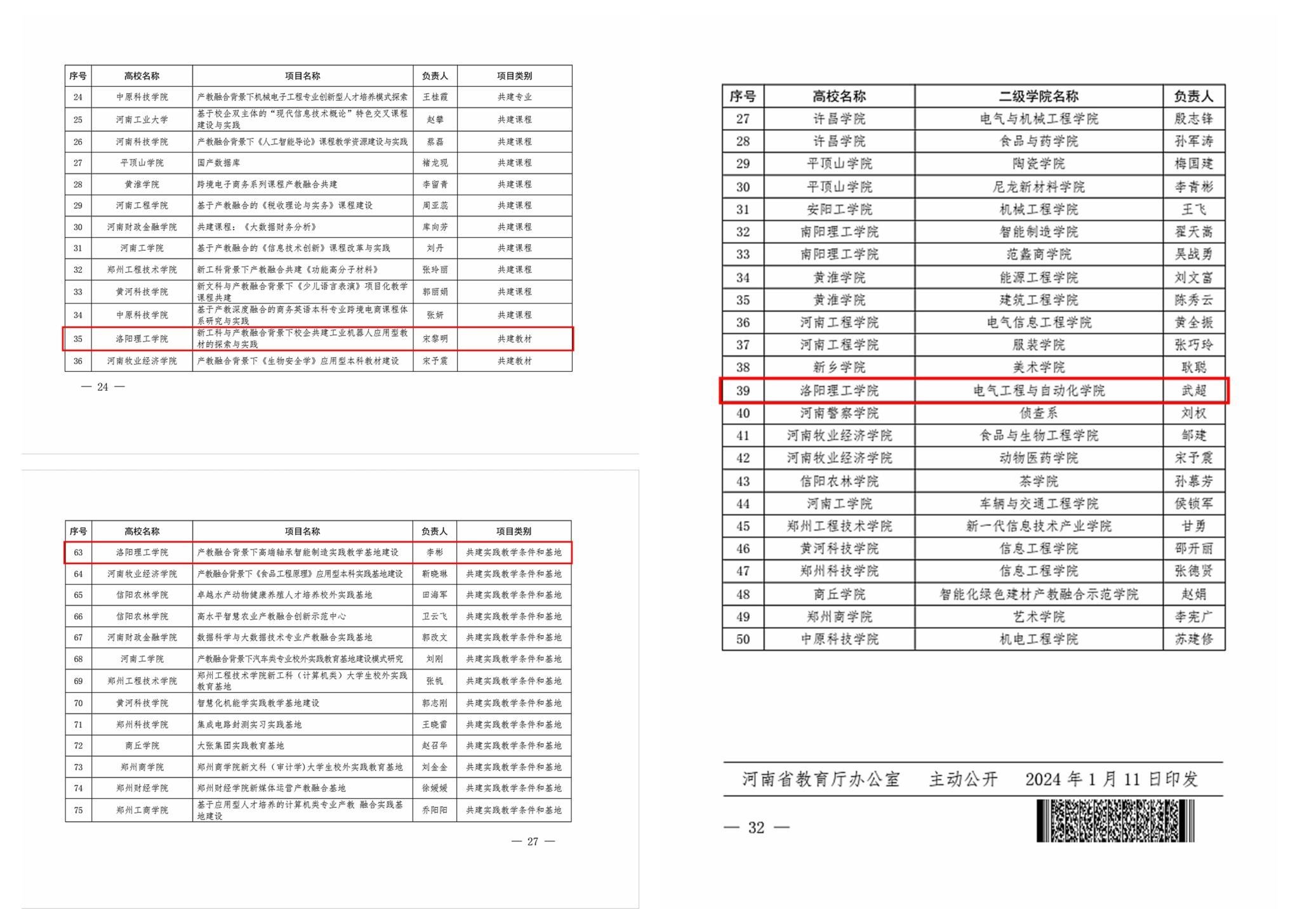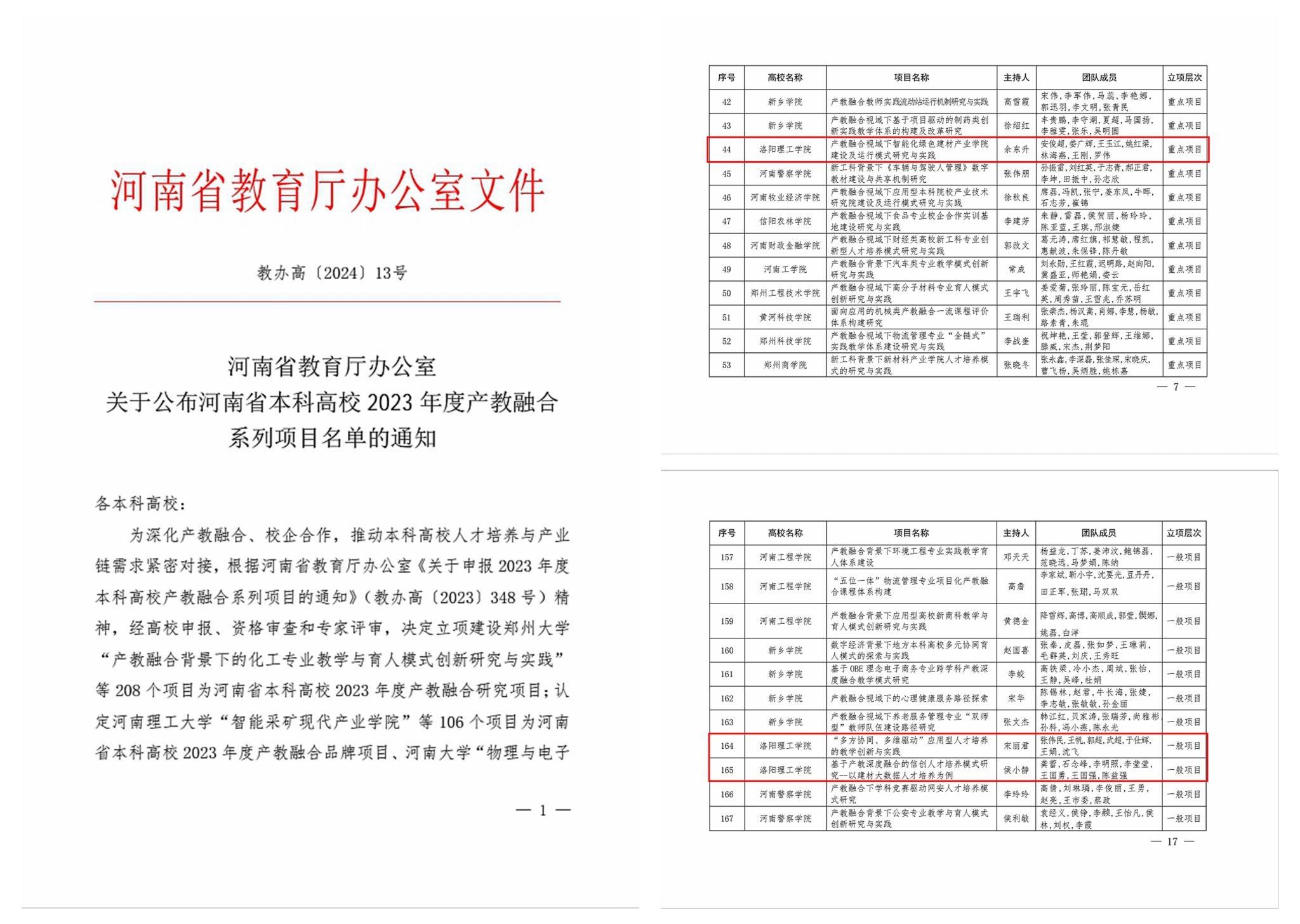 近日,河南省教育厅办公室下发《关于公布河南省本科高校2023年度产教融合系列项目名单的通知》(教办高〔2024〕13号),我校获批多项河南省本科高校2023年度产教融合系列项目。