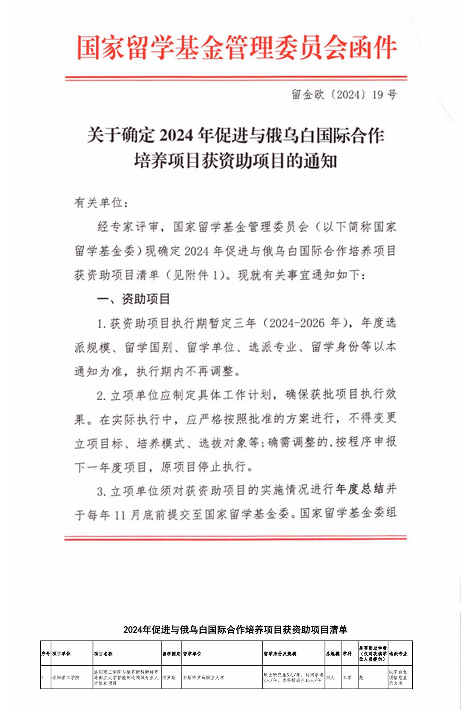 近日,国家留学基金管理委员会(以下简称:国家留学基金委)公布了2024年促进与俄乌白国际合作培养项目获资助项目名单,我校申报的“BETVLCTOR登录入口与俄罗斯科斯特罗马国立大学智能制造领域专业人才培养项目”入选,这是学校首次获批俄乌白政府资助项目。
