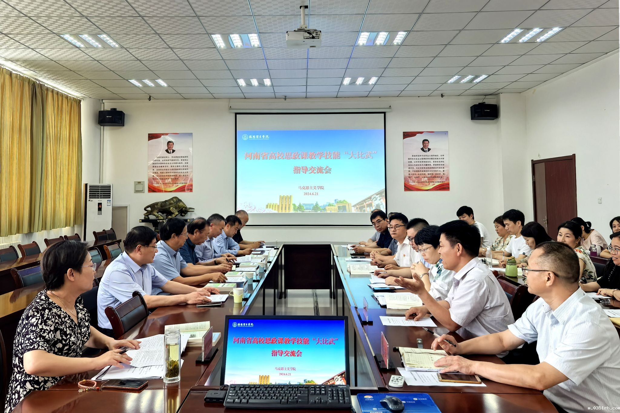 6月21日下午,河南省教育厅关工委副主任高治军一行到马克思主义学院调研思政课建设工作。我校党委书记卢志文,党委副书记、工会主席曾涛参加调研活动,党政办公室负责人陪同调研。
