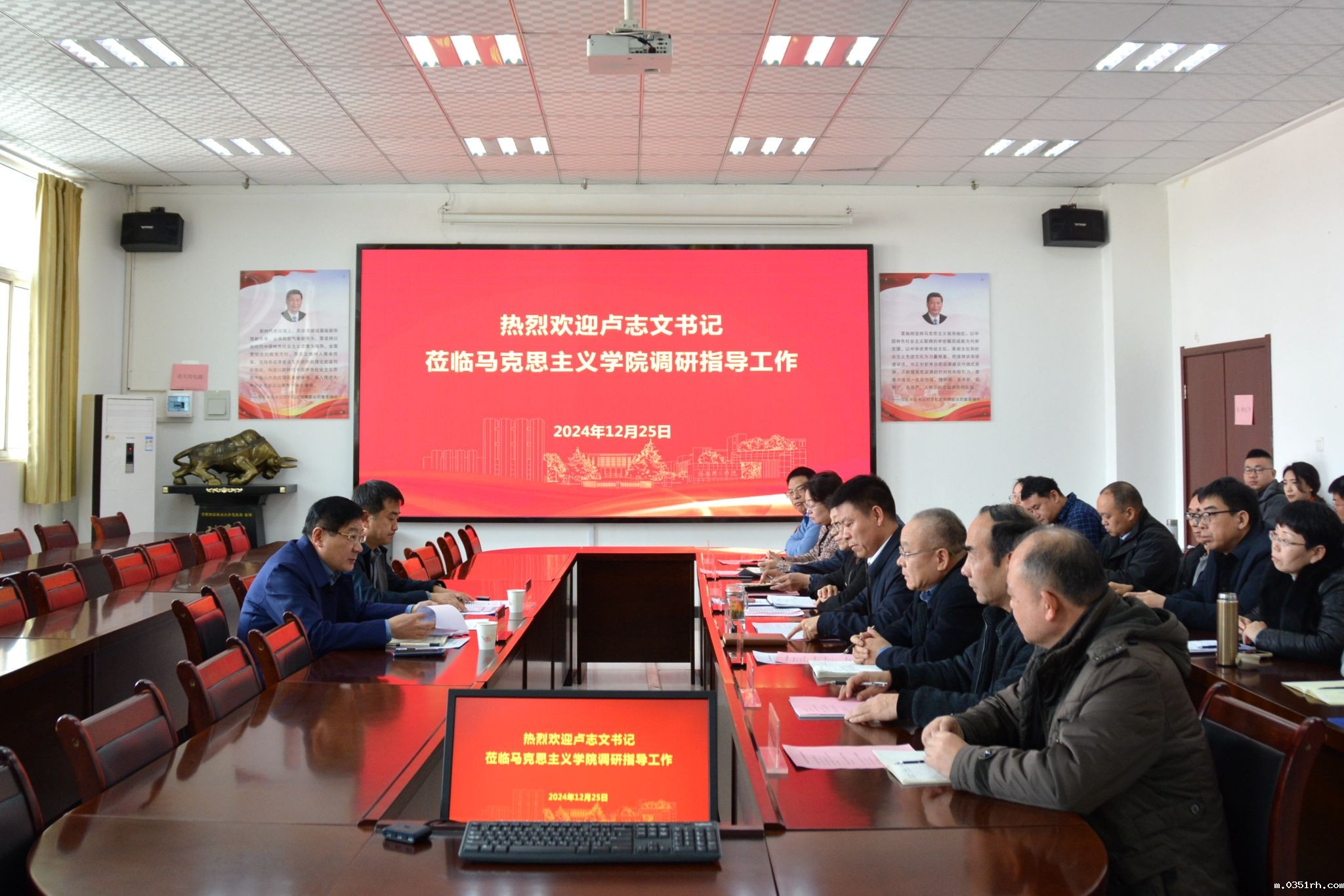 12月25日上午,党委书记卢志文到马克思主义学院调研指导思政课建设工作,党政办公室负责同志陪同调研。