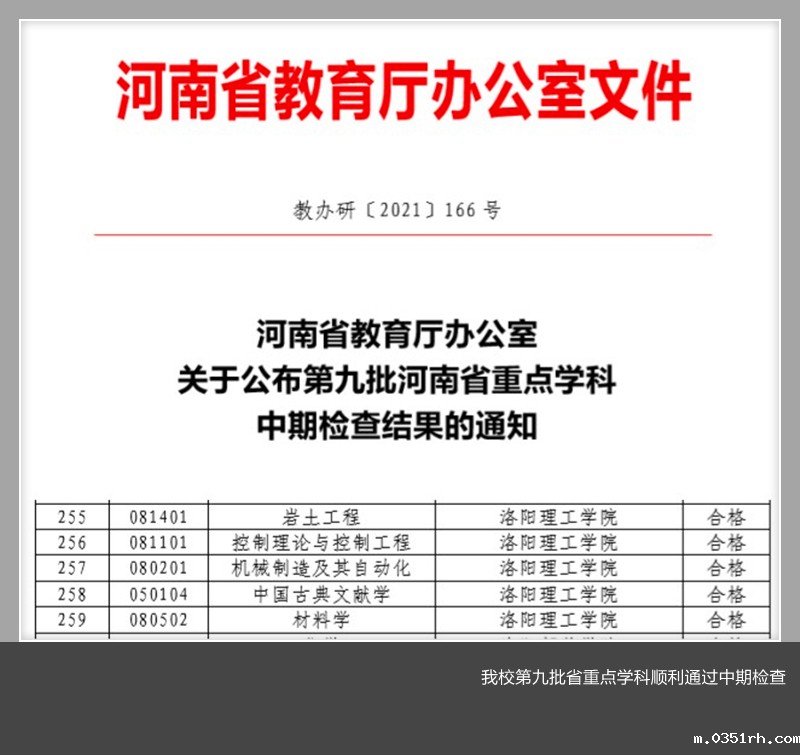 近日,河南省教育厅办公室公布了《关于公布第九批河南省重点学科中期检查结果的通知》(教办研〔2021〕166号),我校5个省级重点学科全部顺利通过中期检查。