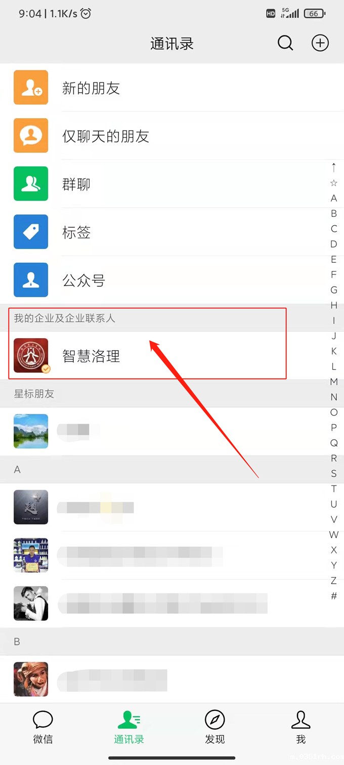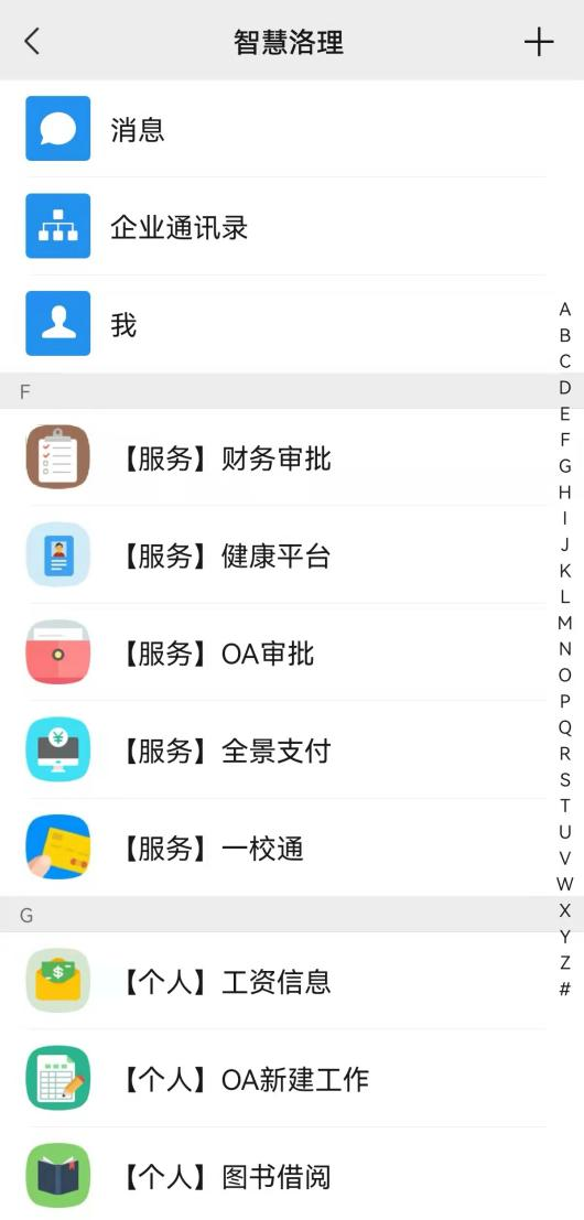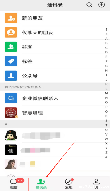 打开微信“通讯录”→  找到企业号“智慧洛理”点击打开。