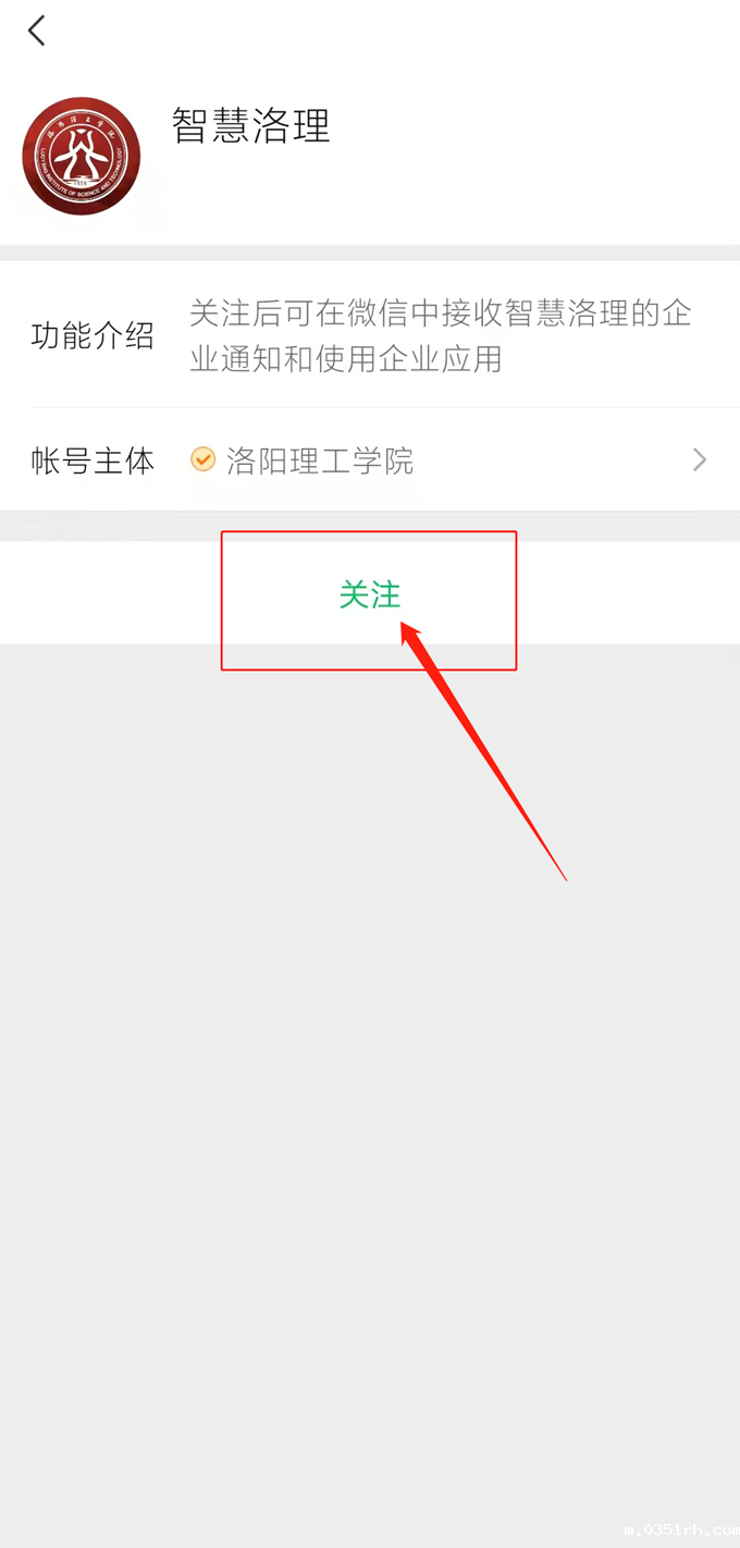 输入手机号→点击“下一步”→关注“智慧洛理”企业号。