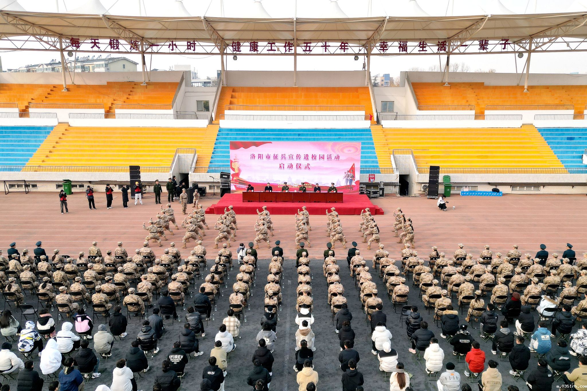 为深入做好大学生征兵宣传,激励更多优秀青年参军入伍,12月24日上午,洛阳市2025年征兵宣传进校园启动仪式在我校王城校区东操场举行。洛阳军分区领导陈彦波、王更军、刘冰,市政府副秘书长毛伟,市委宣传部四级调研员张宏波,我校党委副书记胡恩立等出席仪式。辖区有高校的县(区)人武部负责人,驻洛高校武装部长、辅导员及师生代表共700余人参加仪式。