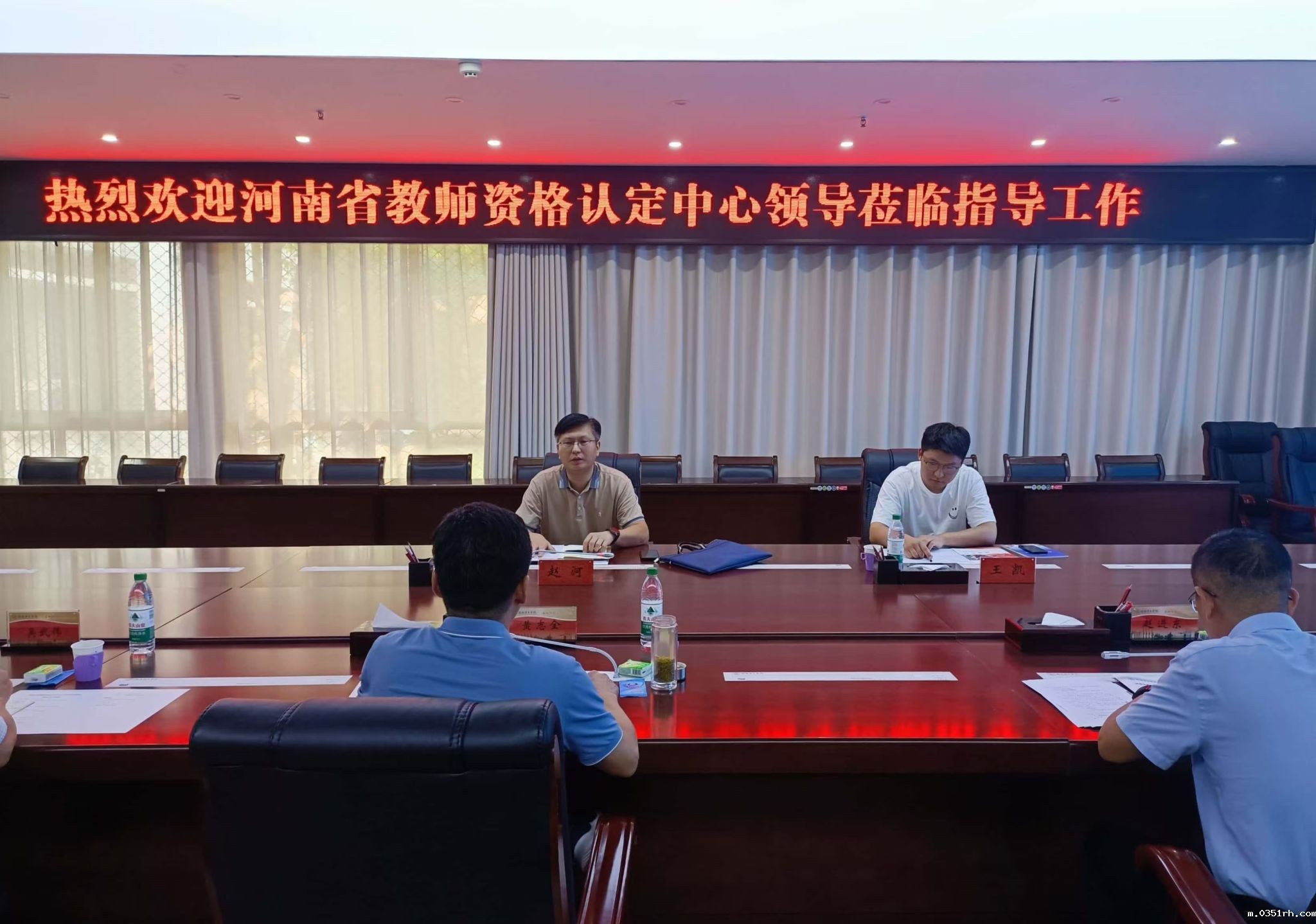 9月9日下午,河南省教师资格认定指导中心主任赵河一行到我校对全省高校教师资格管理人员培训承训工作进行实地考察。考察交流会在王城校区办公楼116会议室举行,校党委委员、副校长黄志全出席并主持会议,党政办、人事处、终身教育处、继续教育学院负责同志参加会议。