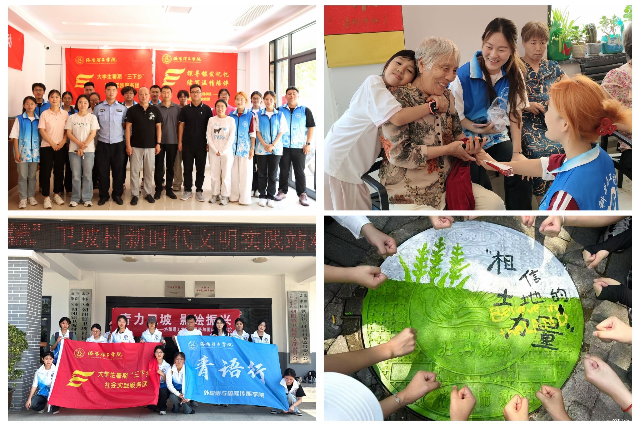 材料科学与工程学院“银发记忆守护者”暑期社会实践团在伊滨区政法信访部、李村街道办事处的支持下,联合伊滨分局反诈中心在兰台嘉苑东组团养老服务中心开展反诈主题志愿服务活动,以青春力量为银发群体撑起“防骗保护伞”。外国语与国际传播学院“青力卫坡·影绘振兴”暑期社会实践团赴河南省洛阳市孟津区卫坡村开展乡村振兴实践活动。实践团聚焦卫坡村清代古建筑群,分组进行建筑细节拍摄与图文档案整理,走进村史馆了解卫坡村的发展历程,并精心策划了一场景区主干道井盖创意彩绘活动。