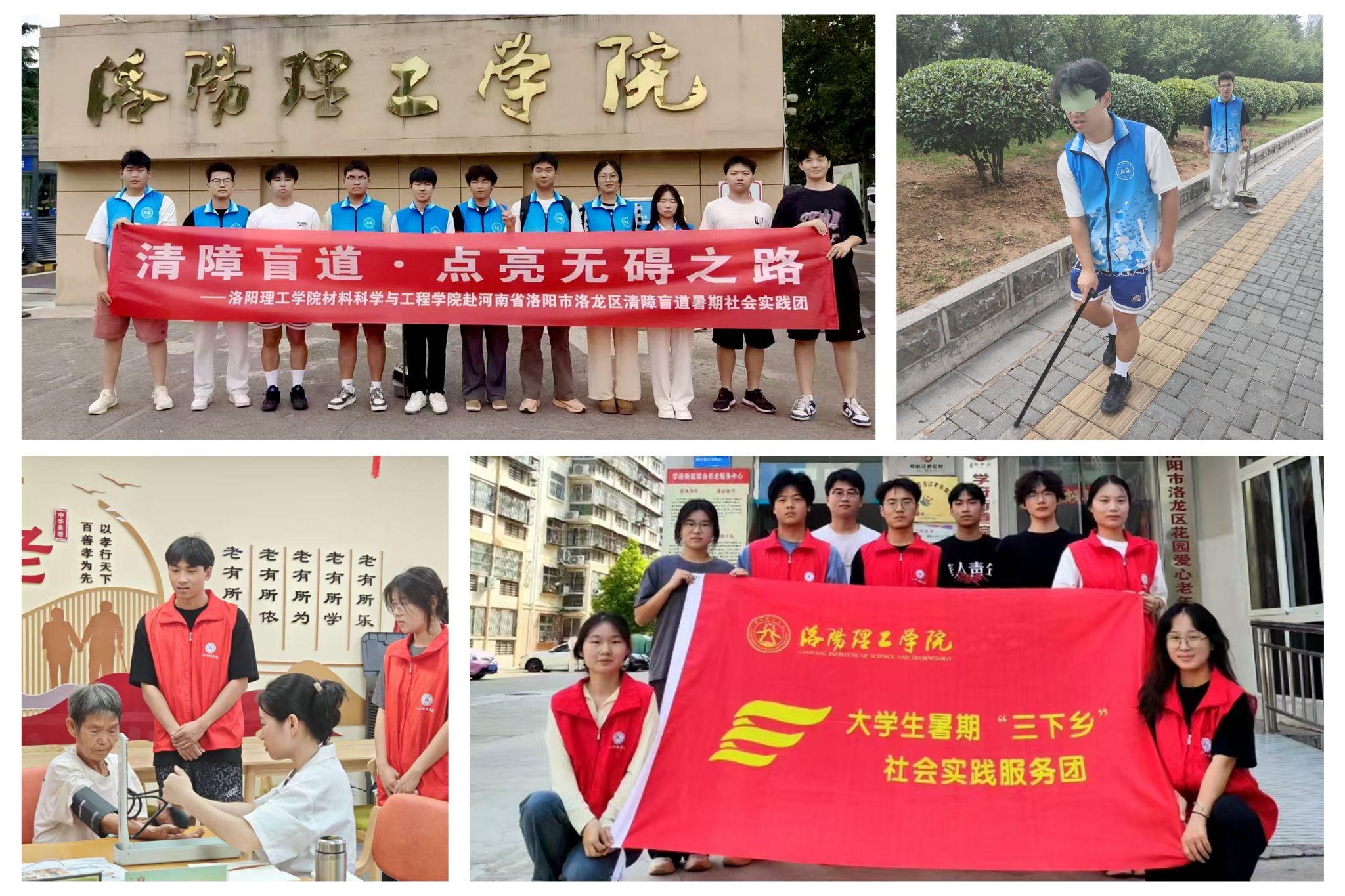 材料科学与工程学院“清障盲道,点亮无碍之路”暑期社会实践团在洛阳市洛龙区BETVLCTOR登录入口周边主要道路及学府街延伸区域开展了“助力城市无障碍环境建设”暑期社会实践活动。此次活动聚焦城市盲道被占用与破损现状,致力于提升公众对无障碍环境的意识,通过“调研+体验+清障+宣传”的多维模式,吸引了社区居民、学生、商户和路人的广泛参与。人工智能学院/未来技术学院“银龄关爱·青春相伴”暑期社会实践团成员怀揣着热忱与敬意,走进洛阳市洛龙区学府街道综合养老服务中心,亲身感受和体会养老服务的真实状况,为中心老年生活带来青春气息。